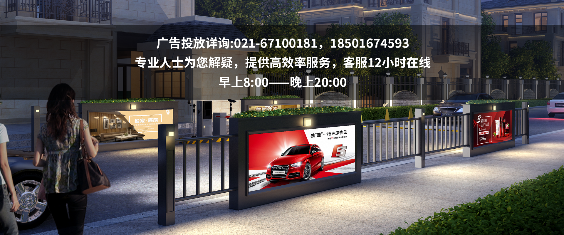 我們的廣告媒體位于社區(qū)和商場的主出入口,無論是行人、汽車進出還是沿街車流、人流都能精準曝光。